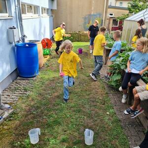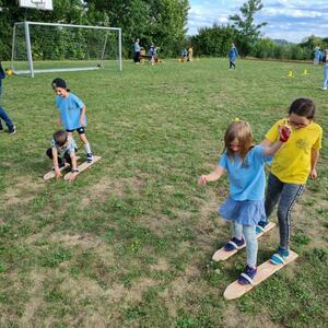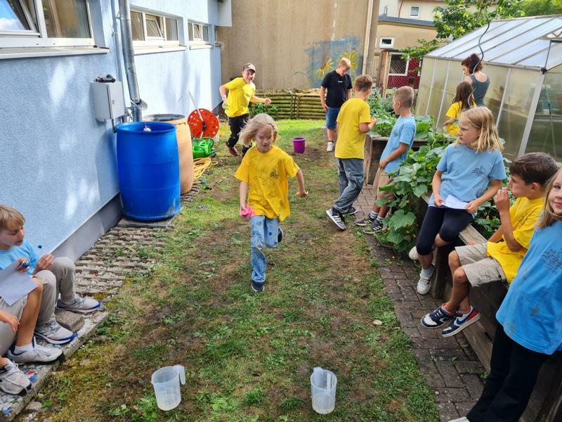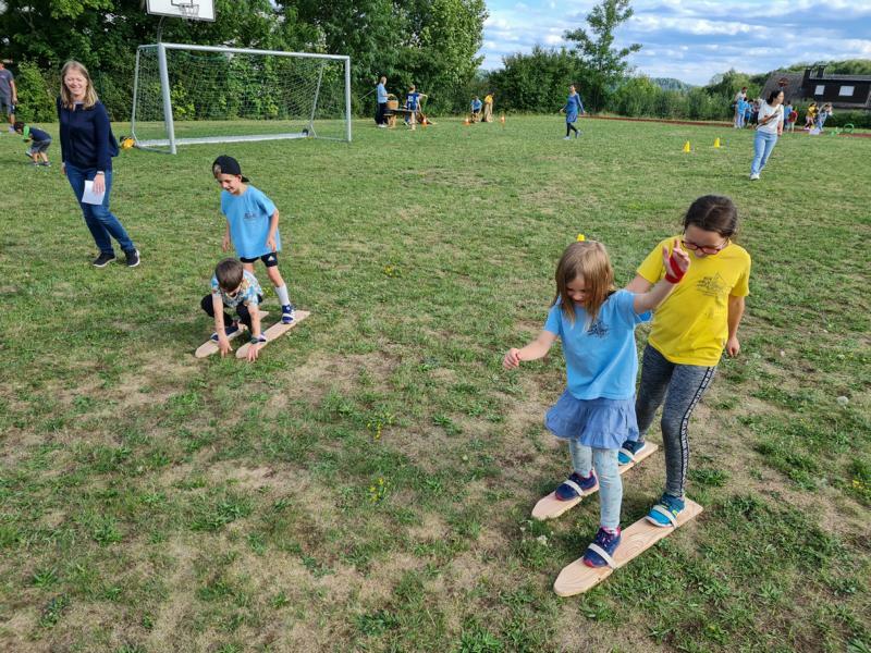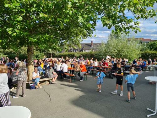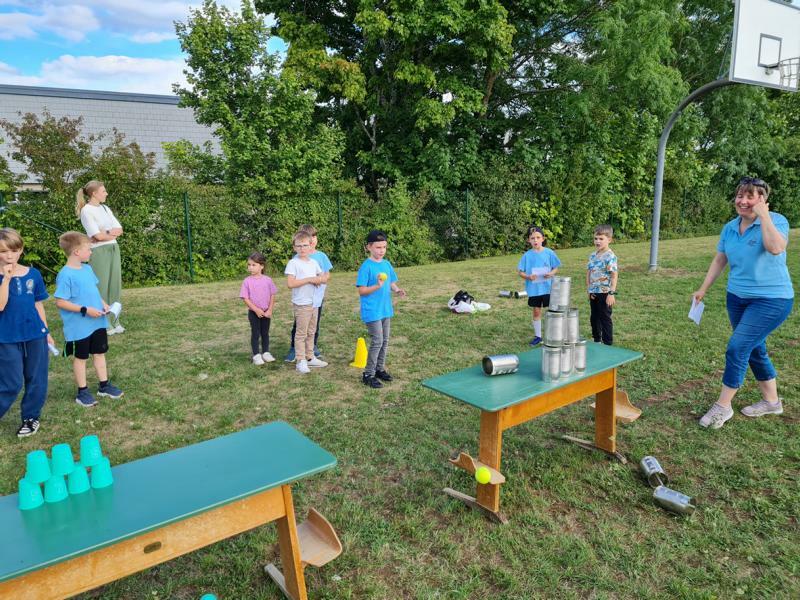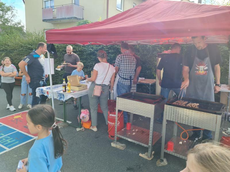 Im Anschluss waren dann alle noch zum Schulfest auf dem Pausenhof eingeladen. Der Elternbeirat sorgte dank vieler Helfer für das leibliche Wohl, während das Schulteam verschiedene Spiel- und Aktionsstationen im Schulgarten und am Sportplatz anbot. So konnten sich die Kinder sportlich, spielerisch oder kreativ betätigen und dabei fleißig Stempel sammeln.